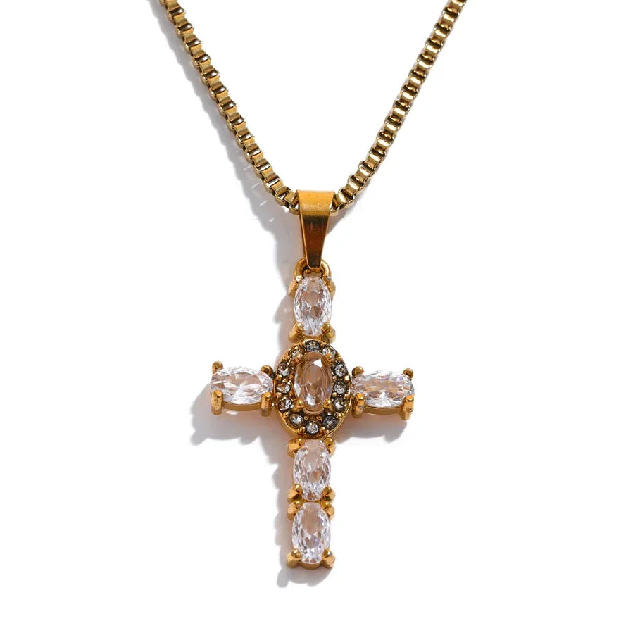 Luxurious Colorful Cubic Zirconia Stainless Steel Cross in 4 Colors at LaurenNichole