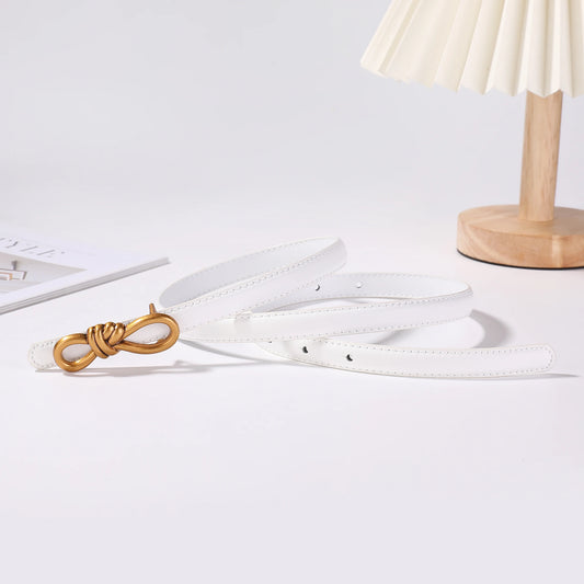 Luxurious Leather Gold Bow Buckle Adjustable Thin Belt in 7 Colors