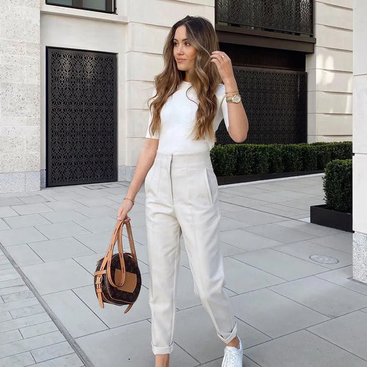 La'Bond Petite Lightweight Casual High Waist Chic Tailored Pants in 20 Colors