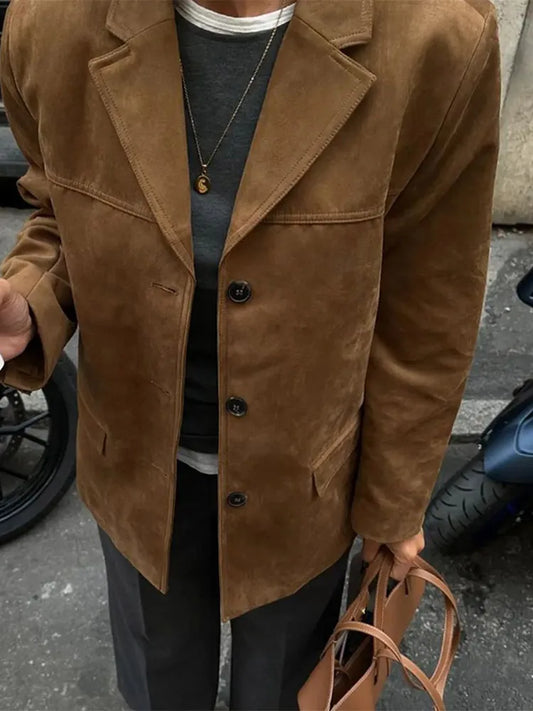 Luxurious Vintage Brown Suede Leather Blazer Coat