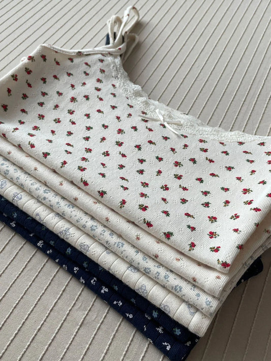 Classic Floral Eyelet Sweet Slim Cami Tops w/ Lace Trim Bow