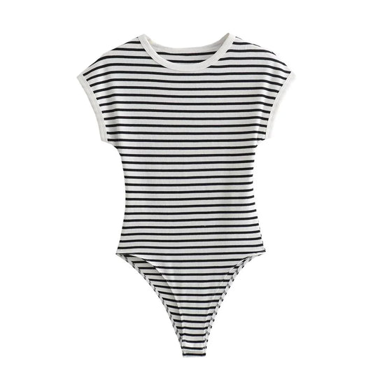 Chic Versatile Ribbed Hemp Round Neck Bodysuit