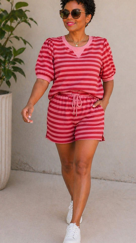 LaurenNichole Daydream Stripe Puff Sleeve Lounge Outfit – Effortless Outfits Size S - 2X
