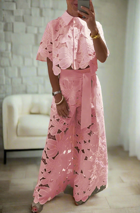 Elegant Floral Embroidered Shirt/Pants Outfit. 5 Colors (S - 3X)