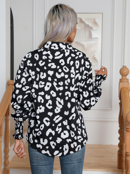 Black Retro Collared Neck Button Down Shirt S - 2X