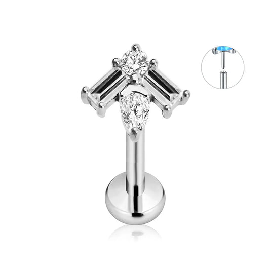 La'Bare Luxurious G23 Titanium Marquise CZ Internal Threaded Studs / Ear, Nose & Lip Piercing