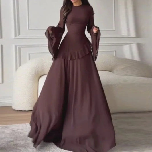 LaurenNichole Elegant Vintage Ruffle Wrap Evening Dress w/ Flare Sleeves – Inclusive XS–6X Floor-Length Gown
