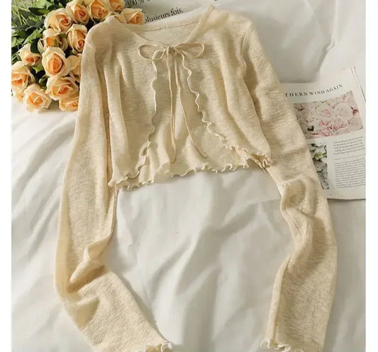 Cropped Knit Lightweight Ruffle Tie Bow Cardigan in 6 Colors