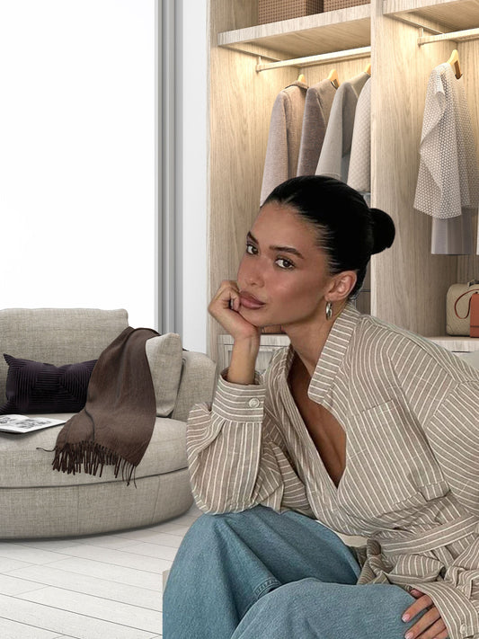 Classic Oversized Button-Up Brown Pinstripe Shirt