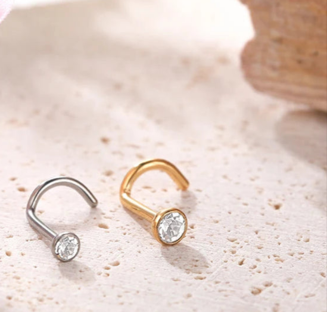 Luxury G23 Titanium CZ Prong Corkscrew Nose Rings