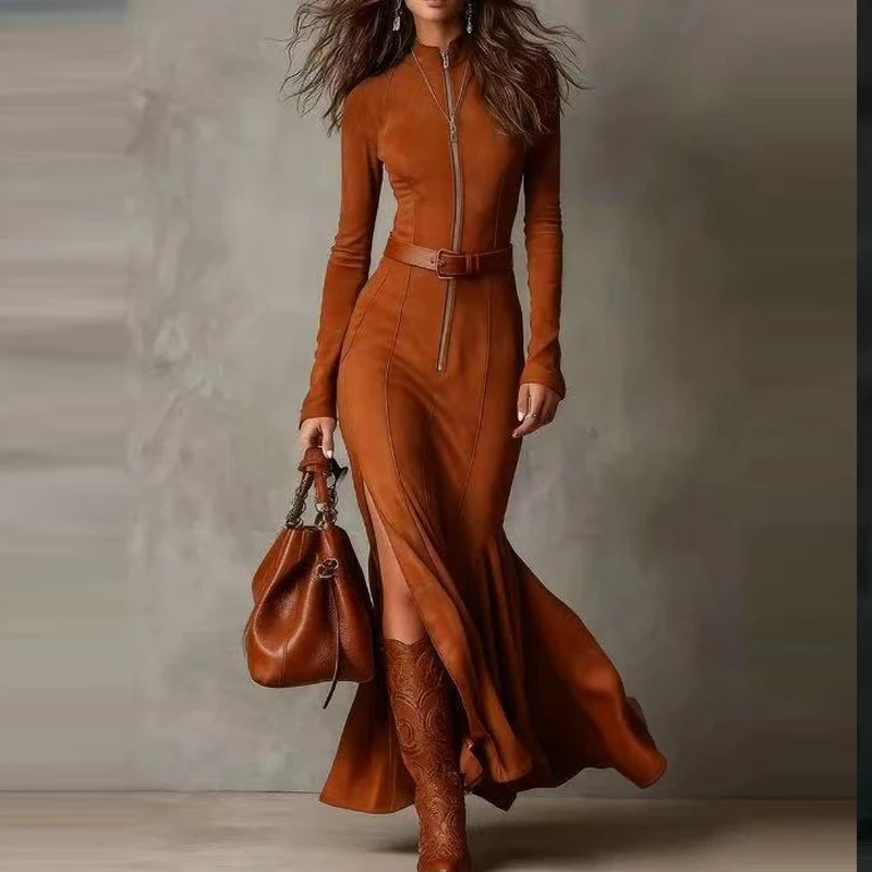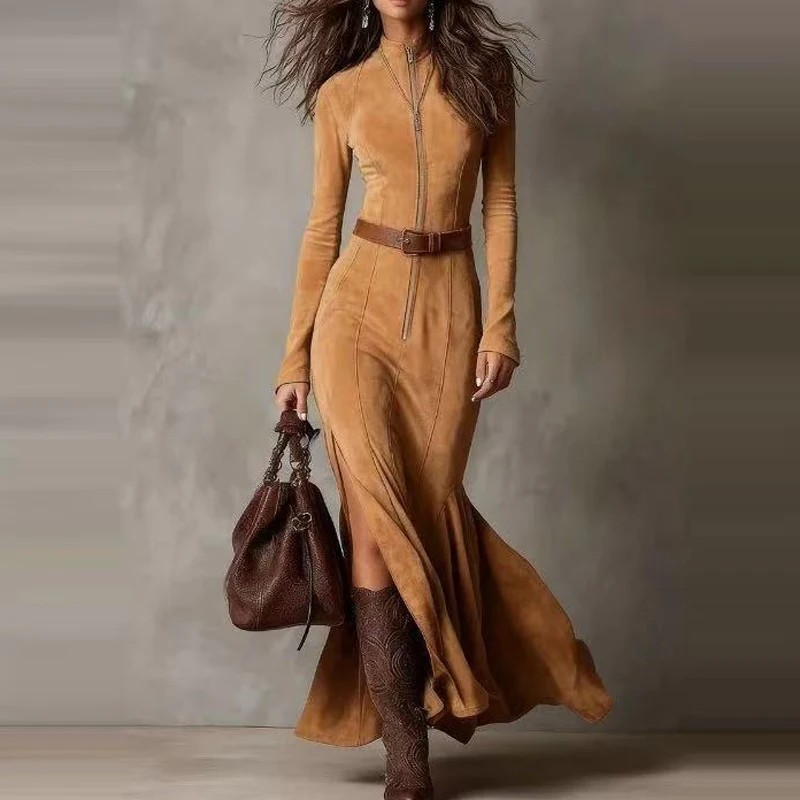 Upgrade your style with our LaurenNichole Casual Suede O-Neck Long Sleeve Maxi Dress—a timeless piece designed to elevate your everyday and evening wardrobe. Featuring a clean O-neckline, soft suede-finish fabric, and a flattering slim silhouette, this ankle-length dress delivers effortless elegance with a modern edge.
