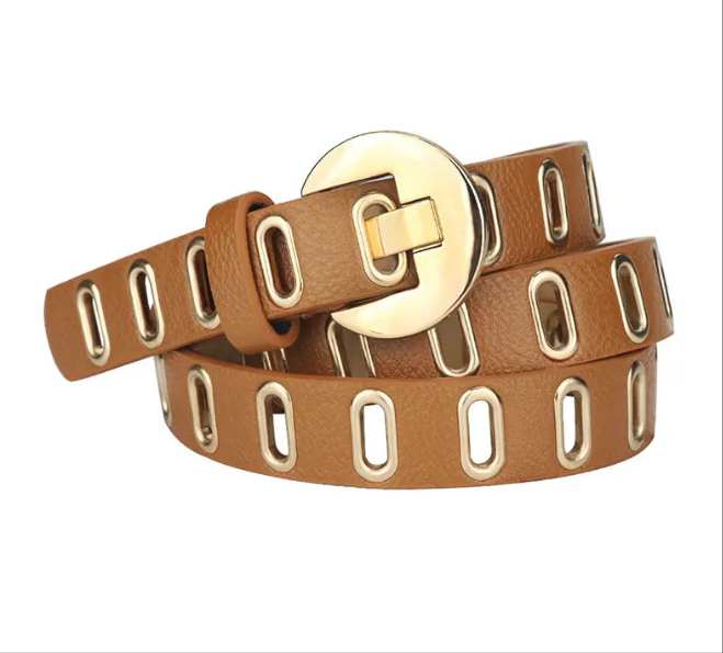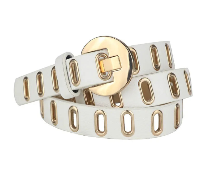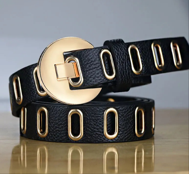 Upgrade and accessorize your outfits with Gold Vegan Leather Adjustable Hole Belt