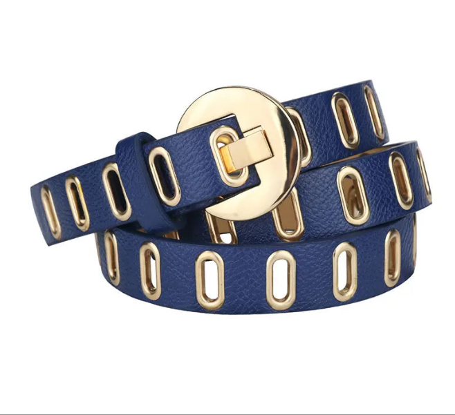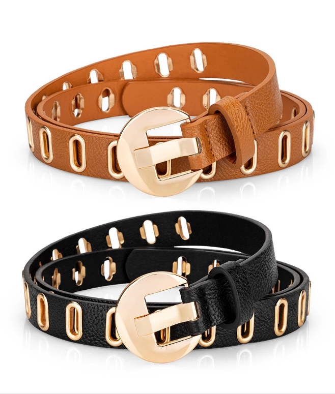 Gold Vegan Leather Adjustable Hole Belts in 5 Colors. Up to Size 2X at LaurenNichole