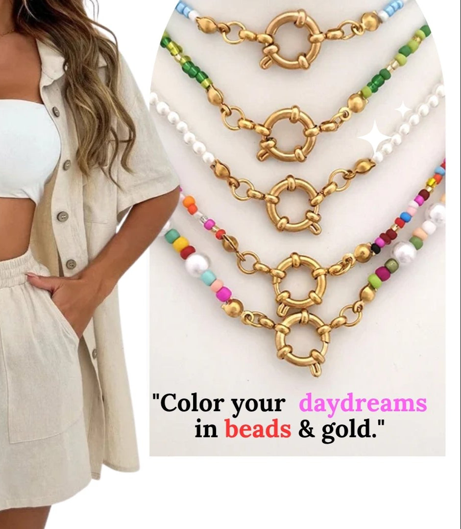 Chic Pearl Seed Beads Stainless Steel Gold Plated Clasp Necklace
