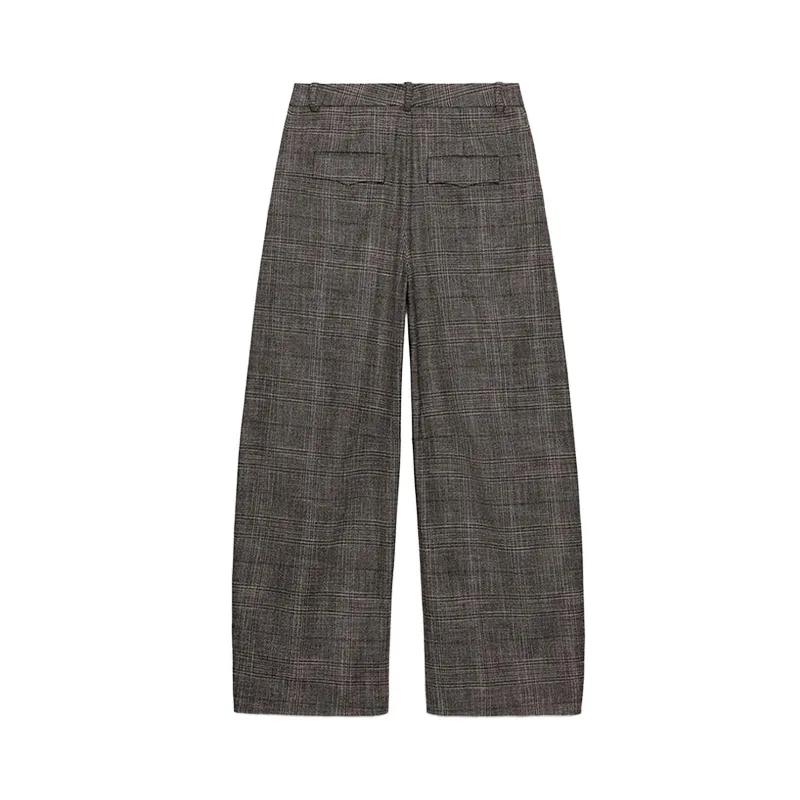 Designed for movement and style, the blazer features a turn-down collar and regular sleeves, while the full-length wide-leg trousers provide flow and ease. The timeless plaid pattern adds refined visual interest, making this set versatile addition to your workwear collection.