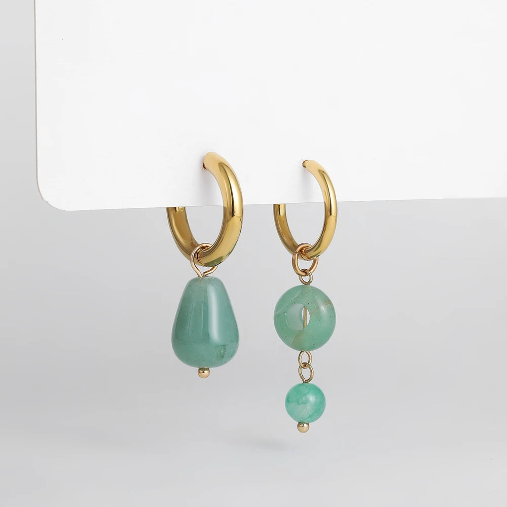Lux Bohemian Handmade Natural Stone Beads Hoop Earrings for women Stainless Steel Circle Huggie Hoops Jewelry at LaurenNichole