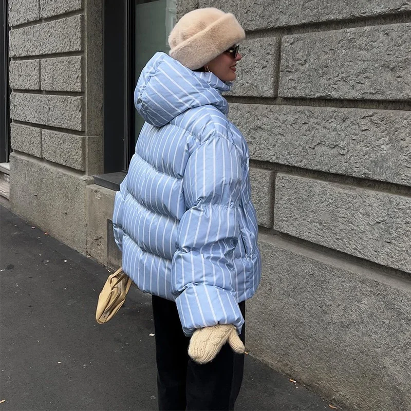 Wrap yourself in effortless elegance with The Daydream, a premium thick high collared neck pinstripe & floral Puffer jackets designed for those who refuse to compromise on comfort or style. Featuring an oversized silhouette, substantial thick cozy hood with double button up wind block covering, Our jacket transitions seamlessly from if casual weekends to polished layering. The structured puffer construction provides warmth without bulk, while the classic pinstripe pattern adds understated sophistication. Available in eight carefully curated colors, The Daydream adapts to your wardrobe and mood. Perfect for the modern woman who values quality craftsmanship and timeless design.